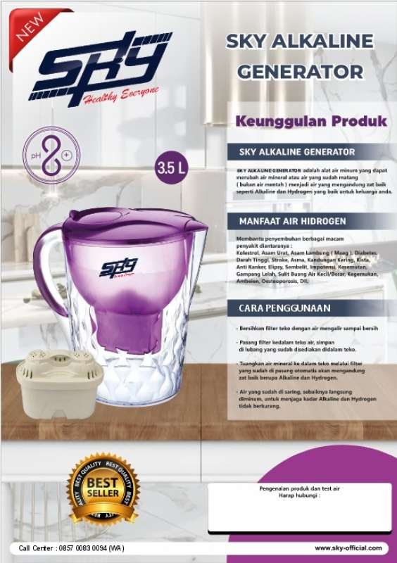 zat baik seperti Alkaline dan Hydrogen, dengan kapasitas air 3,5Liter.